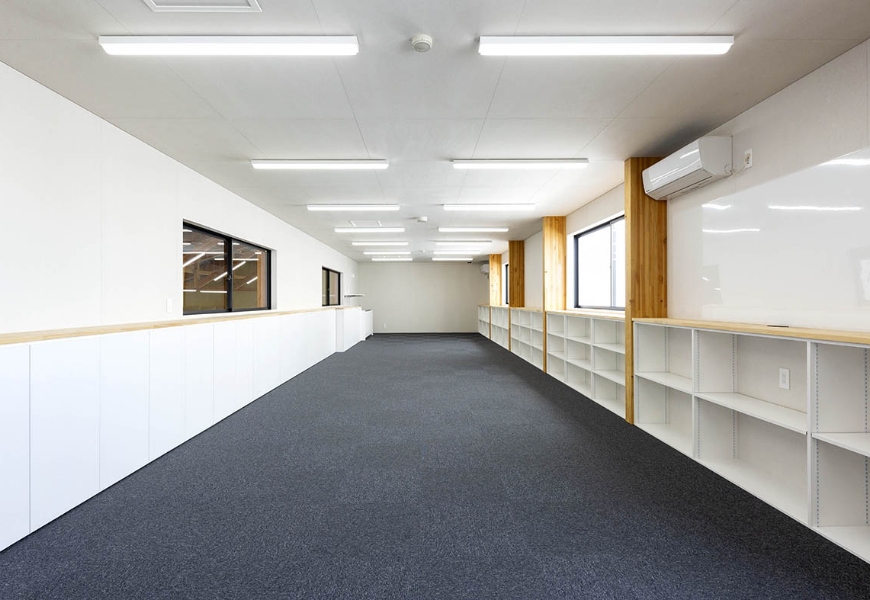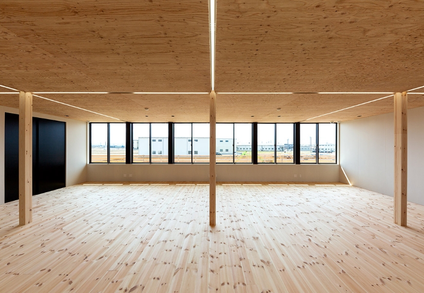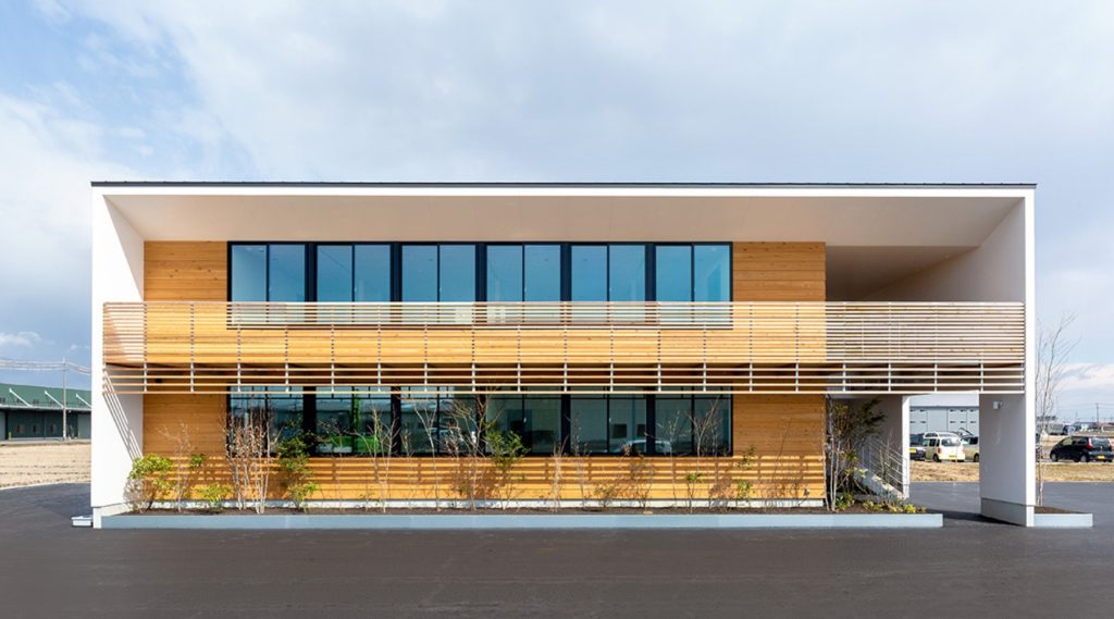 代表の世代交代及び事業拡大に伴う社屋新築のご相談。当初は地元ゼネコンと設計事務所を含めたコンペ形式だったが、オフィスらしからぬ木をふんだんに用いたデザインと、高性能住宅並の性能で採用いただいた。事務所建築から2年後には業績好調により社員を20名以上増員。隣地へのさらなる増築も行っている。